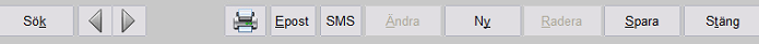 Det finns möjlighet att skicka E-post och SMS på en rad olika sätt i kassan. Man kan till exempel direkt från kundregistret skicka enstaka e-post och SMS genom att hämta upp en kund och trycka på knapparna nedanför. Detta förutsätter att man registrerat mejladress eller mobilnummer på kund.
