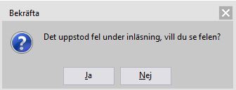 Information om att fel har uppstått visas. Tryck JA för att se felen som på bilden nedan.