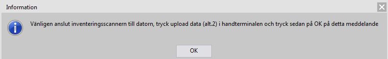 Tänk på att vid arbete med skanners alltid testa samtliga av dessa innan arbetet med inventeringen påbörjas. Skapa gärna en testinventeringslista över en mindre artikelgrupp och prova att ladda upp artiklar som finns i gruppen. Gör detta med samtliga skanners för att säkerställa att de fungerar. Slutför inte listan utan radera den efter testerna.
