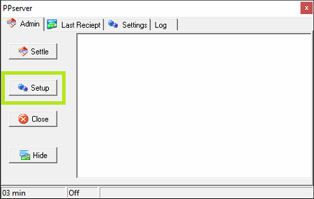 Tryck på knappen "Setup" för att komma till konfigurationsdelen av PP.