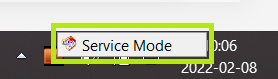 Högerklicka (håll inne fingret) på ikonen och välj "Service Mode".