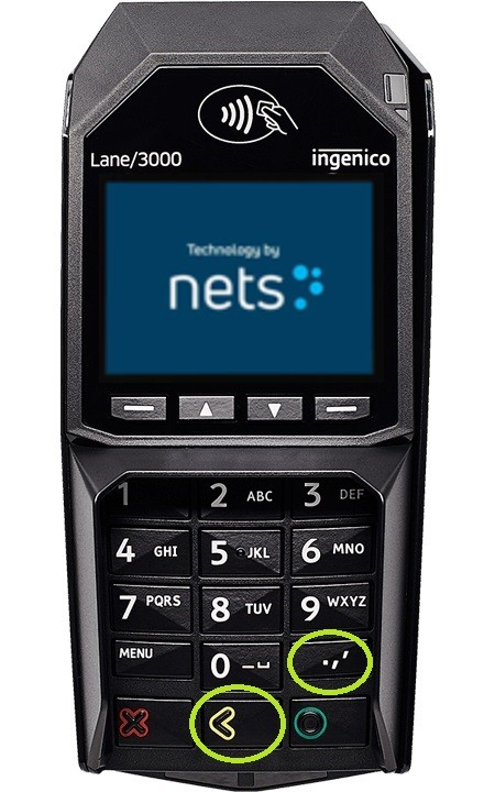 Lane 3000 är uppföljaren till den mycket populära IPP350 och kommer att bli standardterminalen för traditionell kassakoppling via Nets. Denna modell hanteras på samma sätt i menyvalen som sin föregångare och konfigureras på samma sätt i terminalens menyer såsom i kassans "Payment Platform".