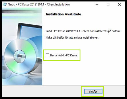 Bocka av "Starta Nutid - PC Kassa" och välj slutför.