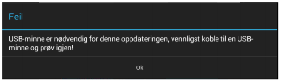 Fins det ingen USB minnepinne, vil du få en feilmelding.