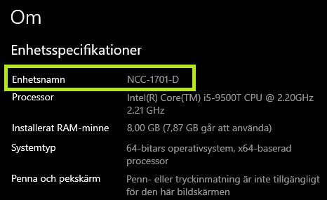 Högerklicka på "Den här datorn" och välj "Egenskaper". Leta efter "Datornamn" eller "Enhetsnamn" och anteckna detta.