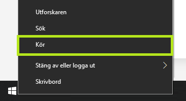 För att ta fram en dators "IP-adress" går det bra att högerklicka på Windows startmeny och välja "Kör".