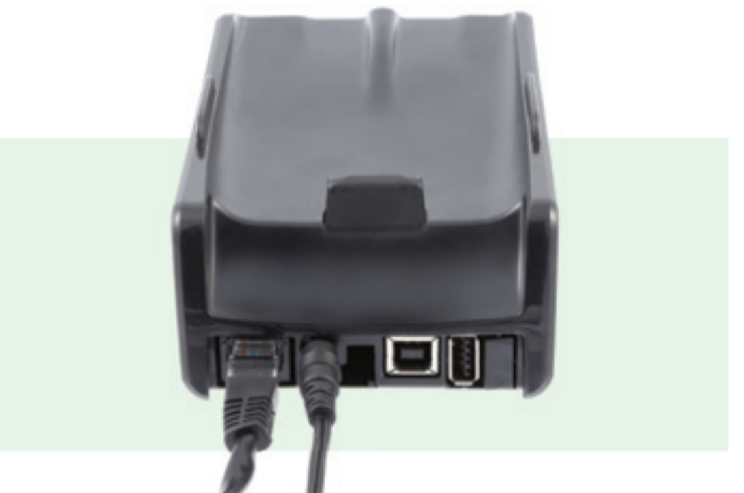 Ingen kabelanslutning görs i handenheten/kortterminalen. All kabelanslutning sker direkt till dockningsstationen/laddstationen och kommunikationen mellan denna och handenheten/kortterminalen sker därefter över Bluetooth. Detta gör det möjligt att lyfta av kortterminalen från dockningsstationen och förflytta den trådlöst till kunden för betalning. Kommunikationen är fortfarande traditionell kassaanslutning då dockningsstationen sköter denna mot kassadatorn.