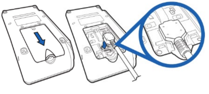 Öppna luckan på undersidan och koppla in anslutningskabeln.