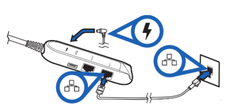 Anslut därefter nätverkskabel (ETH) och strömkabel i förgreningskontakten. Det dröjer ca 5 sekunder innan displayen tänds och upp till 1 minut innan applikation har startat. Var noga med att ansluta nätverkskabeln till rätt nätverksuttag (märkt ETH).