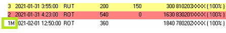 En ansökan där beloppet är manuellt korrigerat specificeras med bokstaven "M" efter färgkoden.
