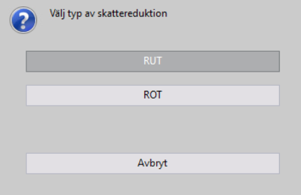 Användning av ROT-avdrag sker på samma sätt som med RUT-avdrag utöver att fönstret för inmatning av personnummer också innehåller kompletterande uppgifter för fastigheten.
