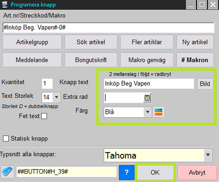Ange slutligen text på knappen. Slutför med [OK].