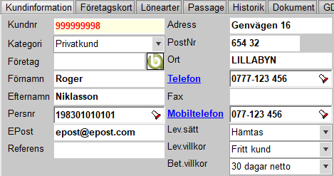 Sök fram inlämnaren, öppna kundkortet och kopiera kundnumret och övrig information. Stäng därefter fönstret.