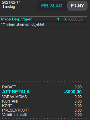 Tryck på knappen för att registrera inköp och utbetalningsbelopp till kund.