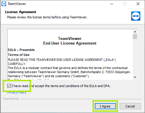 När mjukvaran har laddat klart kan följande fönster visas och detta behöver godkännas för att ID-numret från Teamviewer ska öppnas upp.