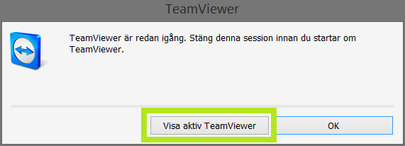 Klicka på knappen [Visa aktiv TeamViewer] eller om engelska [Show running TeamViewer]