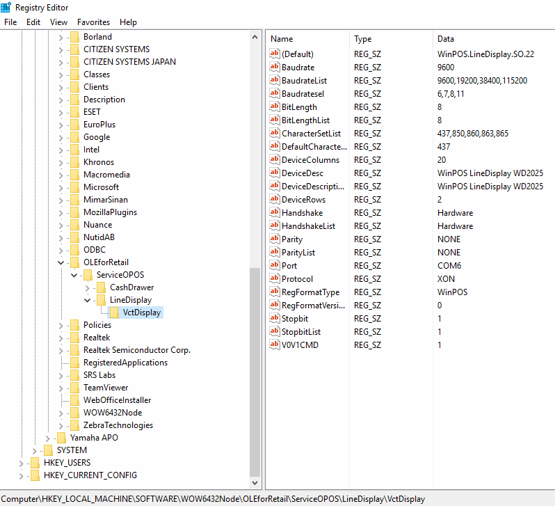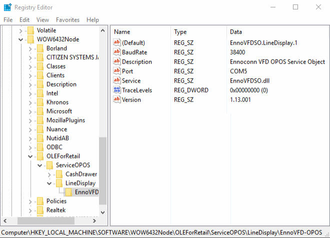 Om det inte upprättas någon kommunikation till LCD-displayen på nyare modeller vid rätt val i PC-Kassa kan en powerdrain behövas på datorn samt internt kablage kontrolleras eller LCD-displayen bytas. Möjligen kan man kontrollera nycklarna i Windowsregistret enligt bilden sedan men rekommendationen är att disken byts ifall misstankar om att Windowsregistret är påverkat då även annat kan vara påverkat i registret.