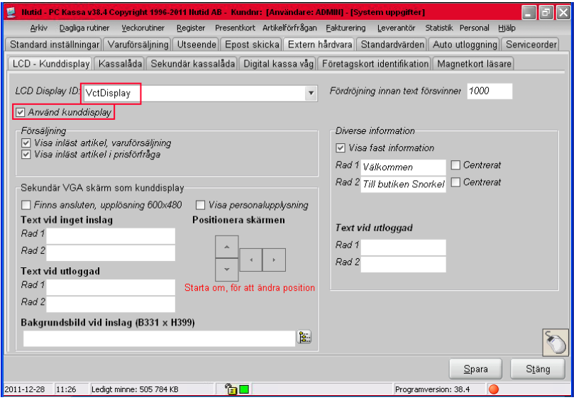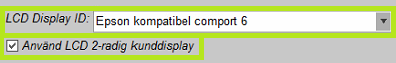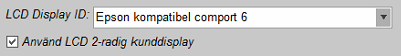 Ange relevant inställning och markera kryssrutan "Använd LCD 2-radig kunddisplay"