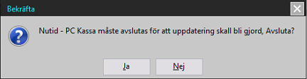 I det fallet ska alla kassor uppdateras. Man kan göra på samma sätt som ovan på alla kassor och även backoffice-kassor. Man får även en uppmaning att uppdatera när man startar (om) kassan utifall en annan kassa i samma system har blivit uppdaterat. Det är bara att svara ja på frågorna om att installera samt starta om kassaprogrammet.