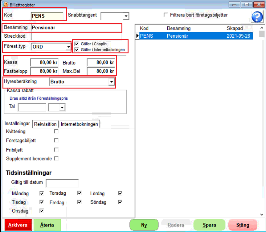 7. Om biljettkoden ska gälla på internetbokningen så måste man även aktivera denna funktion.