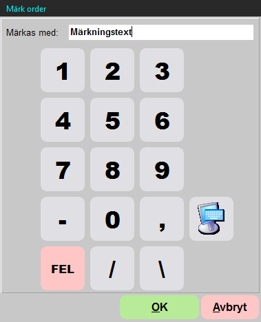 Märkning av ordern är valfritt. Om ingen märkning ska göras går det bra att trycka "Nej" i fönstret. I exemplet märker vi ordern.