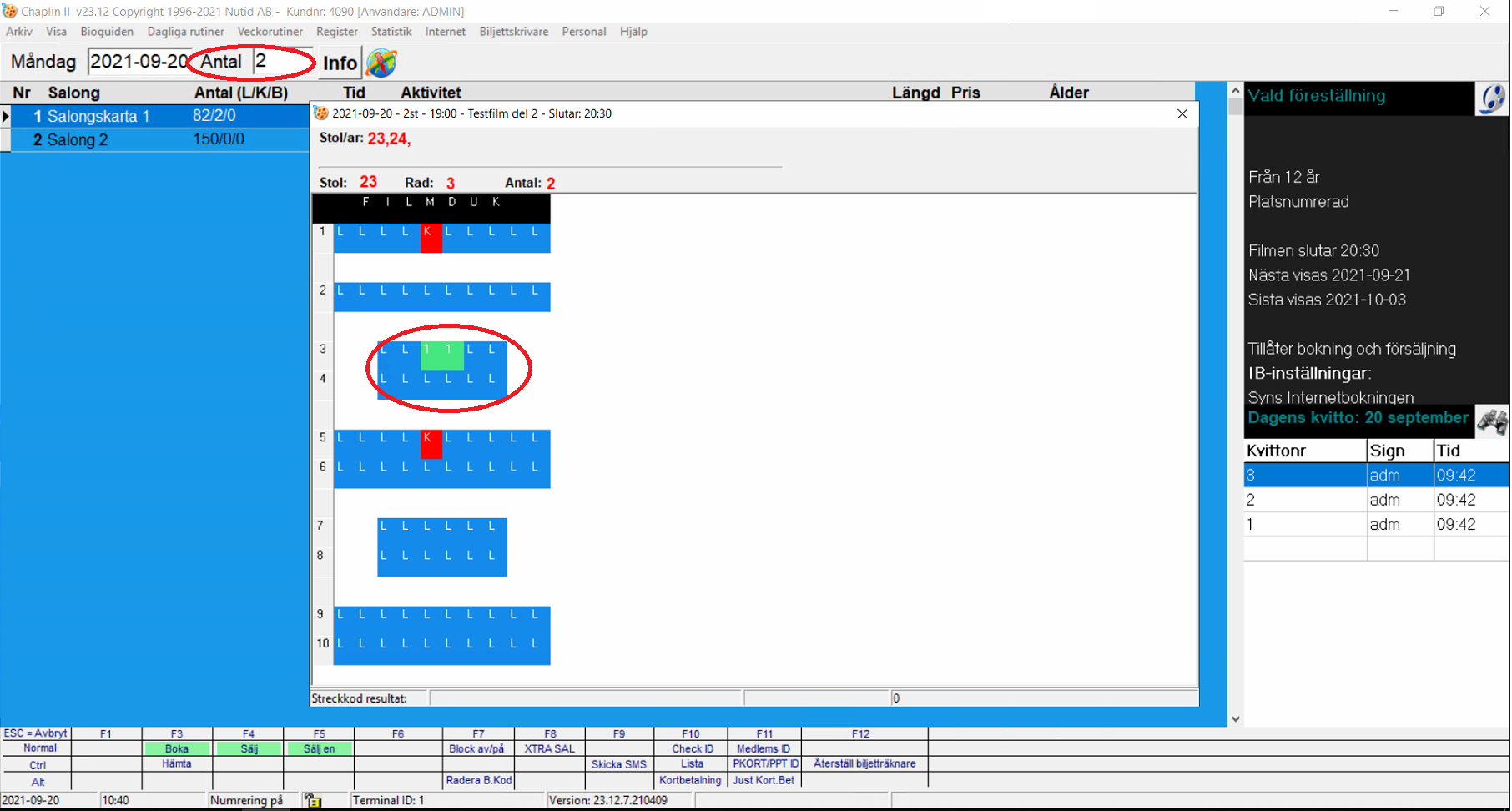 2. Efter att man har valt placeringen (om platsnumrering) Så kommer man vidare till försäljningsläget.