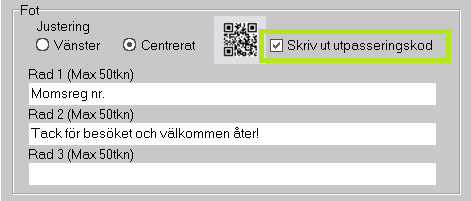 I kassan under kvittoinställningar ställer man in om det ska skrivas ut en streckkod för utpassering. Detta fungerar mot Checkmark Sverige AB och deras grindlösning. Om det fungerar mot andra tillverkare vet vi inte i dagsläget.