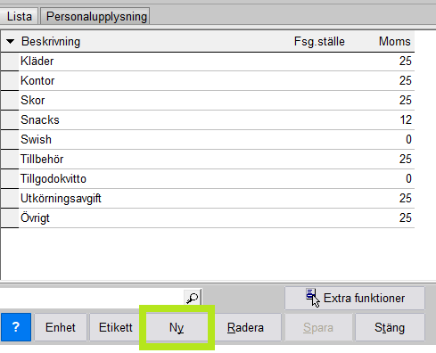 Tillse att "Moms" ändrats till "0". Stäng sedan fönstret.