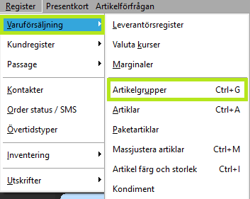 Gå till menyn Register - Varuförsäljning - Artikelgrupper