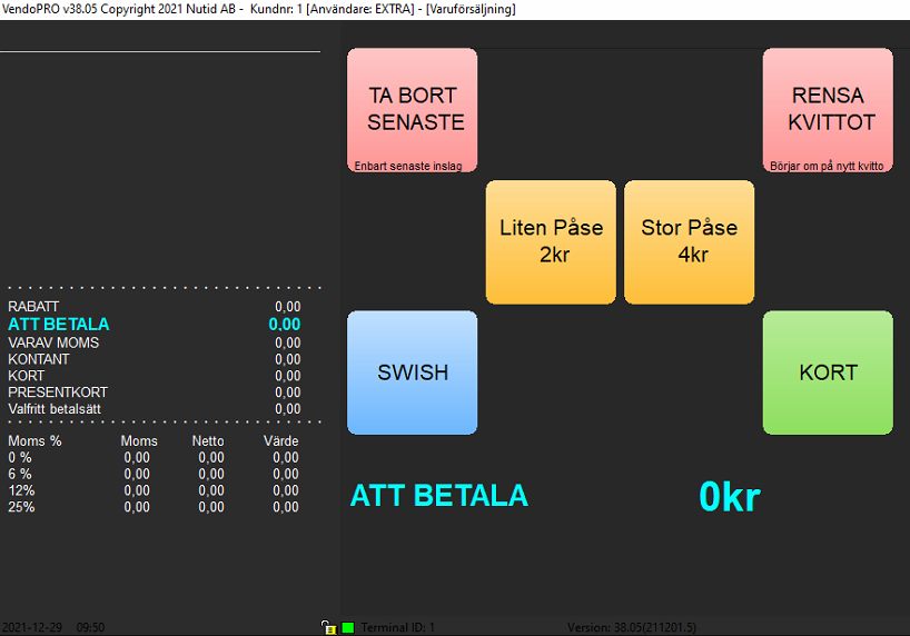 Det går också såklart att skapa en separat snabbknapp som kör makro ##AVSLUTA## för att enkelt stänga ner kassaprogrammet. Dock med den uppenbara risken att knappen används av kunder vilket de flesta vill undvika i OT-kassor.