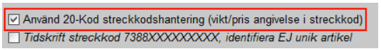 Markera: Använd 20-kod…