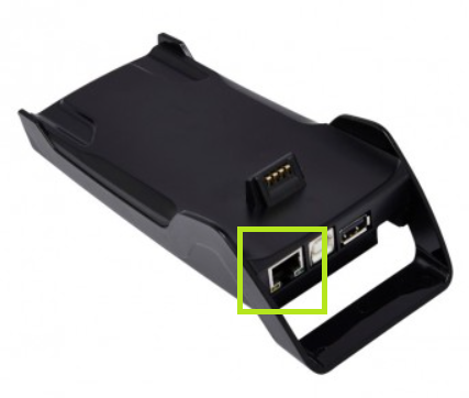 Tillkoppling med Ethernetkabel via dockningsstationen.
