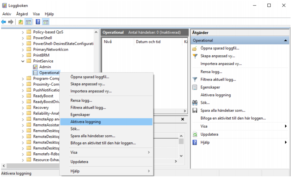 (Program- och tjänsteloggar/Microsoft/Windows/PrintService) -