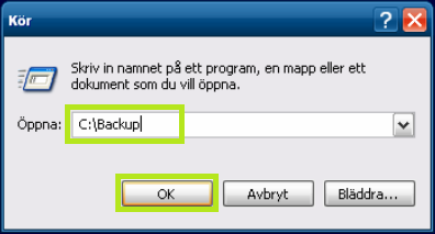 1.4. Ta fram sökvägen till den mapp där säkerhetskopiorna sparas