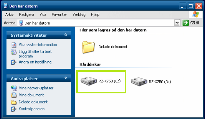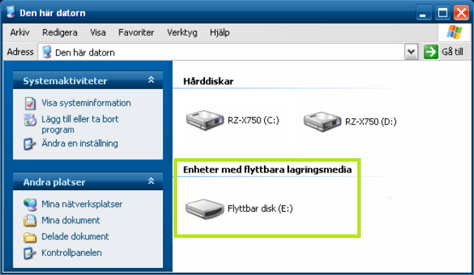 Istället för att öppna "hårddisken" ska den flyttbara disken (USB-minnet / externa hårddisken) öppnas genom att dubbelklicka på den.