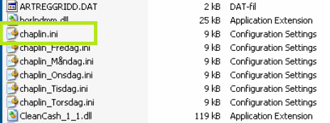 - Kopiera kassaprogrammets inställningsfiler "chaplin.ini" och "settings.ini"