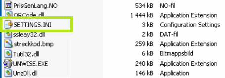 Sök sedan även fram filen "SETTINGS.INI" i mappen "Nutid PC Kassa" och kopiera denna på samma sätt till den externa lagringsenheten.