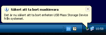 När enheten är säker att ta bort informeras detta på skärmen och det går bra att koppla ur USB-minnet eller den externa hårddisken från datorn.