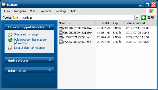 - Backupfilen / Säkerhetskopian (BAK-fil eller ZAK-fil)
