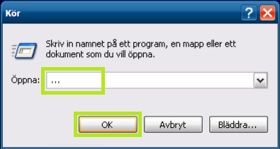 Tips! Om genvägen inte finns går det också bra att välja startmenyn, "Kör" och ange tre punkter "..." i fältet följt av "OK" för att komma till "Den här datorn".