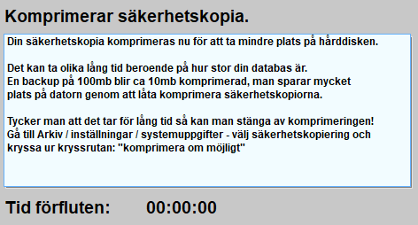 Systemet upprättar backupfilen i angiven sökväg och komprimerar den automatiskt för att spara plats.