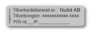 OBS! Saknas denna etikett måste en ny beställas samt en ny registrering av kassaregistret utföras via Skatteverkets webbplats, se mer om detta längre ner.