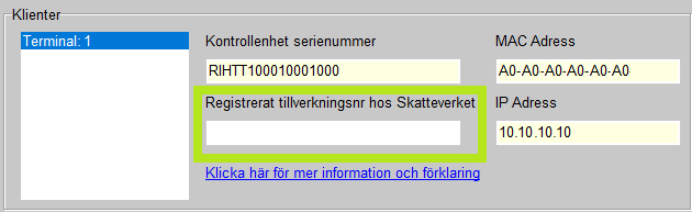 OBSERVERA! Detta ersätter INTE registrering av kassan hos Skatteverket utan detta måste fortfarande utföras.