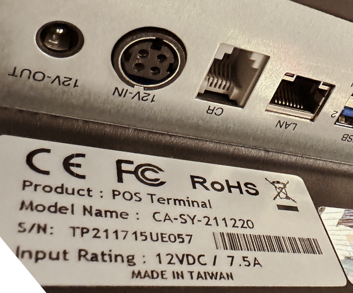 OBS! Det finns många olika versioner av Captures POS enheter, men det är endast modellen CA-SY-211220 som vi har certifierat. Modellbeteckningen står på etiketten på baksidan av enheten