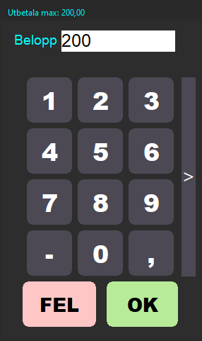 För att genomföra utbetalning, tryck på knappen för detta och ange det belopp som ska utbetalas till kund.