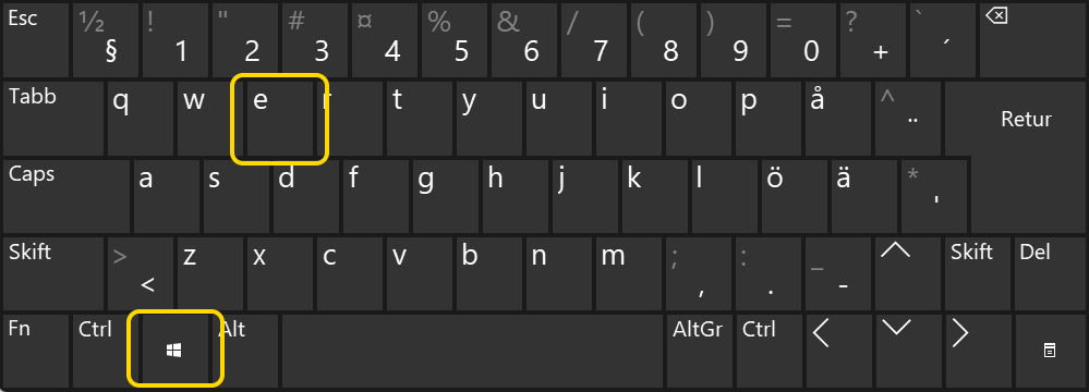 Det går även bra att, på tangentbordet, hålla nere Windowsknappen och samtidigt trycka en gång på knappen "E".