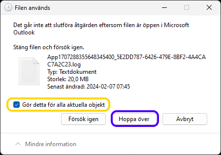 Markera kryssrutan (gult) och tryck sedan på knappen "Hoppa över".