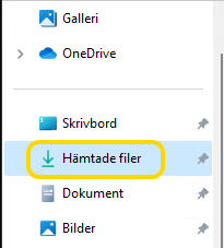 I Utforskaren, gå till Hämtade filer (Downloads)