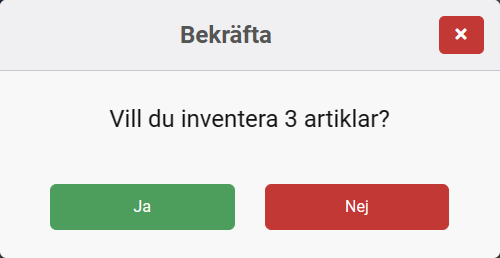 Svara Ja för att inventera artiklarna.