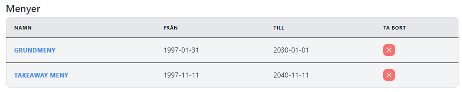 Men har man ett säsongbaserat utbud kan man istället välja ett mindre datumspann och därefter skapa en ny meny som istället börjar gälla när "till datumet" på den initala menyn har passerat.
